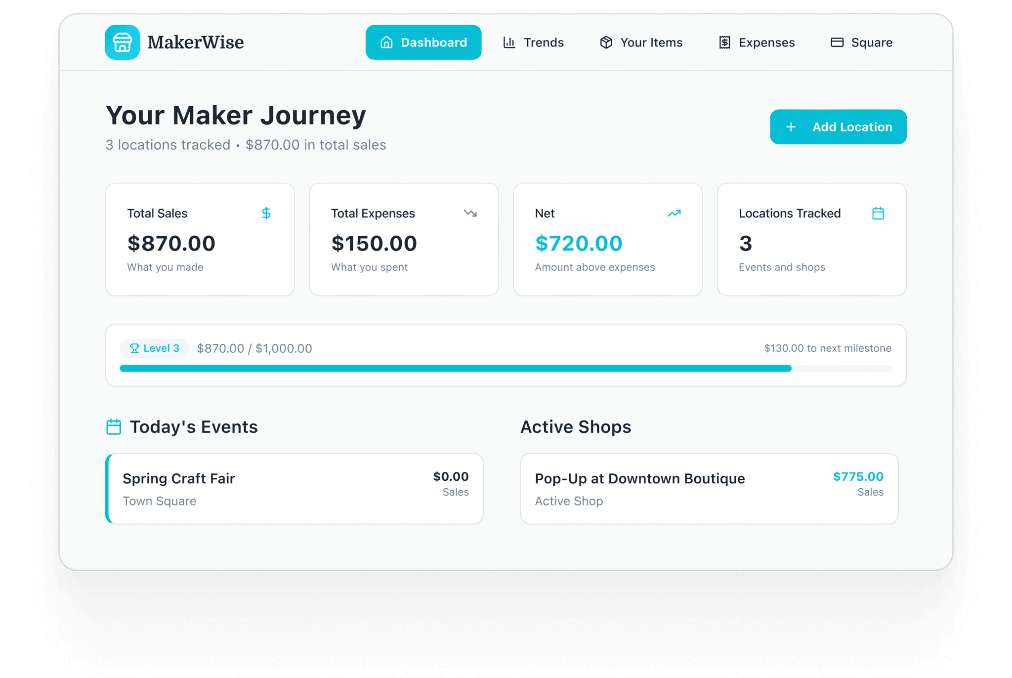 MakerWise shows you top products, best venues, and what's connecting with customers - so you know where to focus your energy.