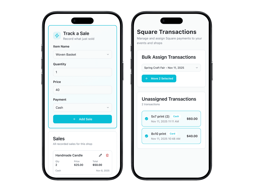 Add sales during the fair with your phone, or integrate directly with Square. Done in a few seconds. No pile of receipts waiting at home.